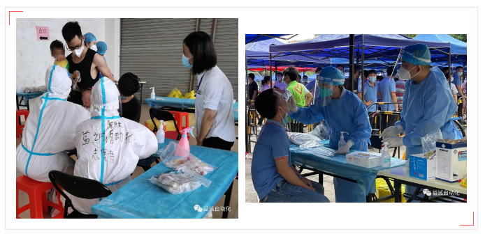 当日,东莞天气骄阳似火、烈日炎炎,室外气温高达三十多度。亚星游戏官网-www.yaxin333.com有限公司五名志愿员分两批轮班,投身抗疫一线。他们快速学习了工作要求,迅速上岗,承担了医护人员采样辅助、封瓶、包装检测试管等工作。